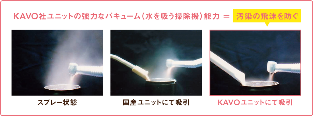 除菌フィルタを採用した「エアー除菌ユニット」で、診療台には常に浄化されたエアーが供給されています。